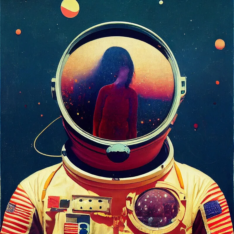 Quadro su tela Poster of an American Astronaut in space, sci-fi art