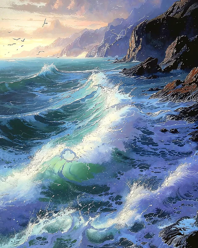 Adesivo murale Powerful Waves Crashing Against the Rocks