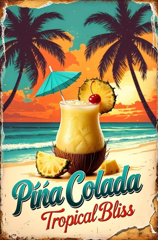 Adesivo murale Retro Beach Drink Print: Timeless Island Charm