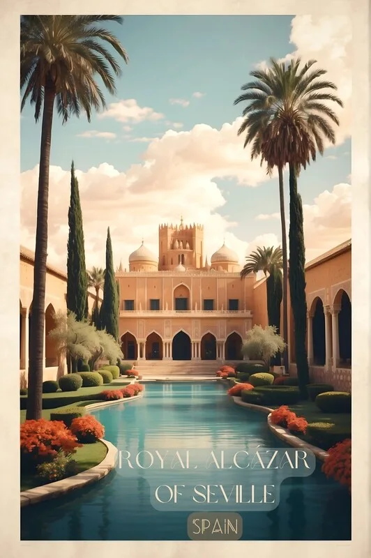 Adesivo murale Royal Alcazar Vintage Travel Poster - Spanish Heritage Art