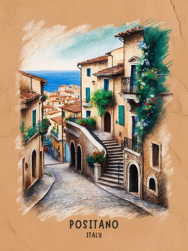 Adesivo murale Vintage-Inspired Positano Prints: Capturing the Amalfi Coast
