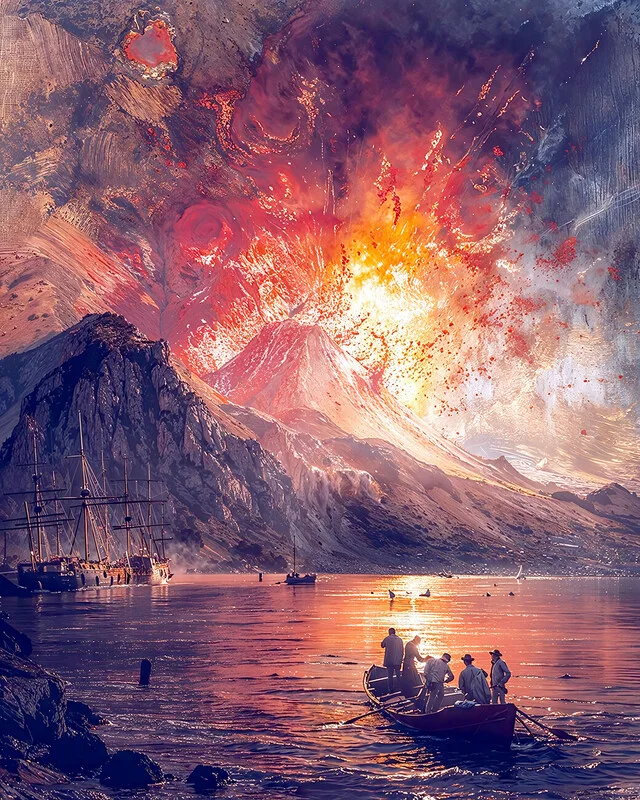 Adesivo murale Volcanic Outburst Along the Coast, canvas wall decor ideas