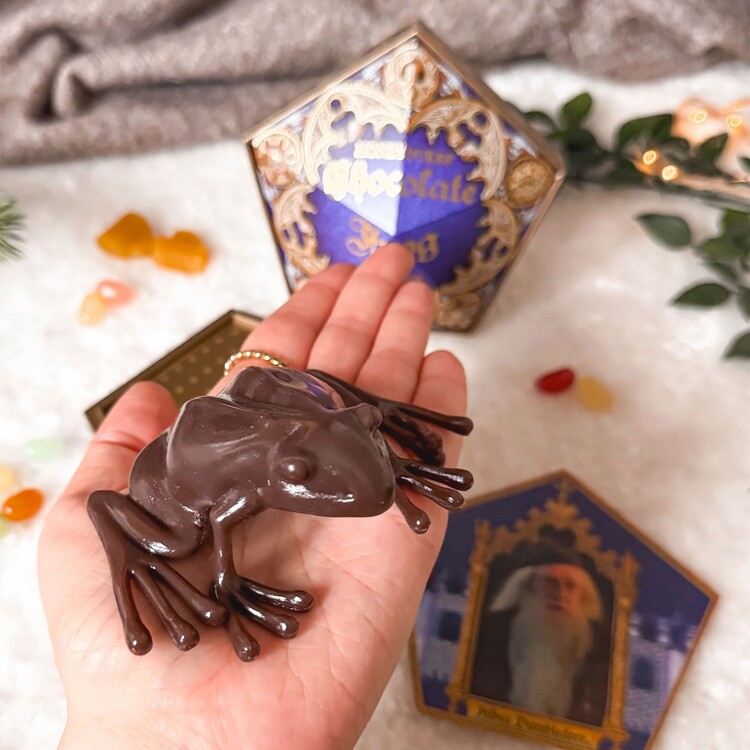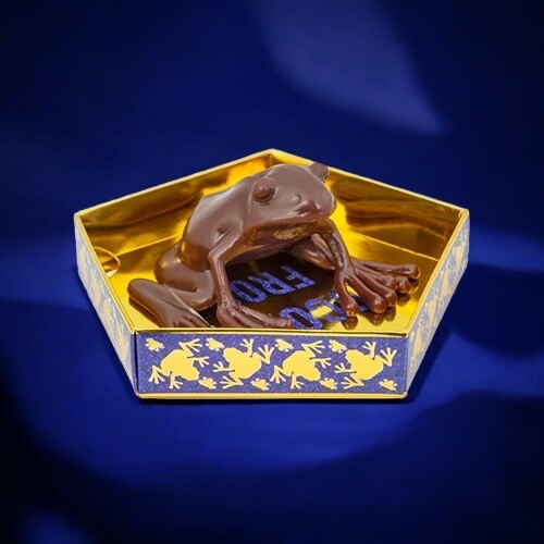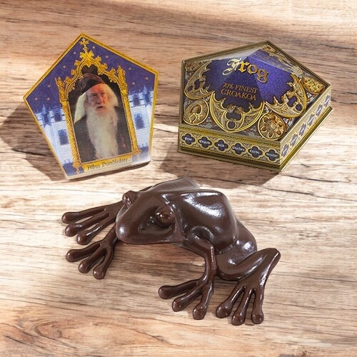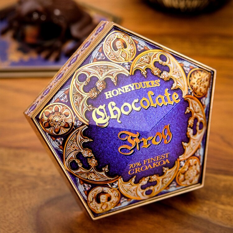 Questa bellissima replica della confezione della rana di cioccolato di Harry Potter contiene una scatola, un biglietto di Albus Silente e una rana di cioccolato che può essere piegata. La scatola misura 12x12x2,5 cm e il biglietto 11x10 cm.