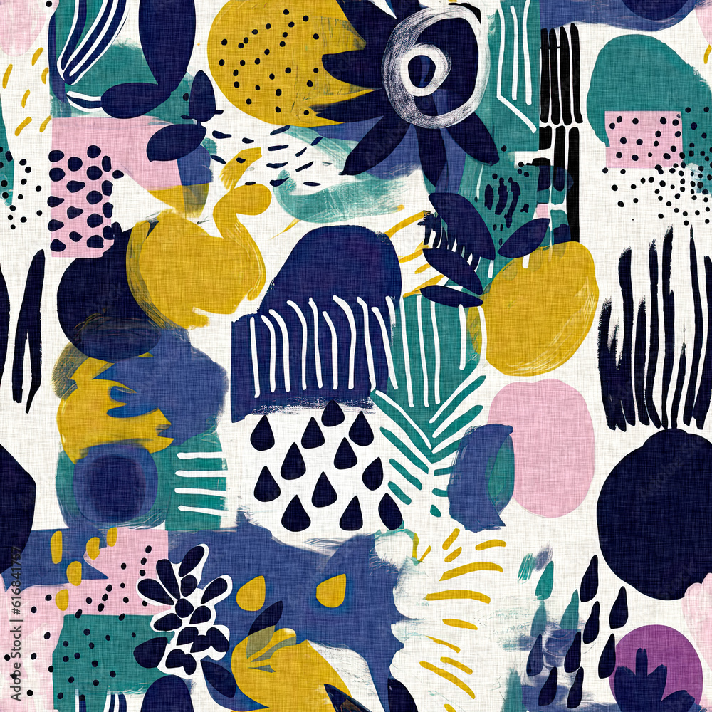 Foto Modern naive collage paper cut out shapes pattern with fabric effect design