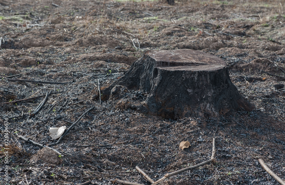 Foto old Tree Stumps caused by deforestation and burn.