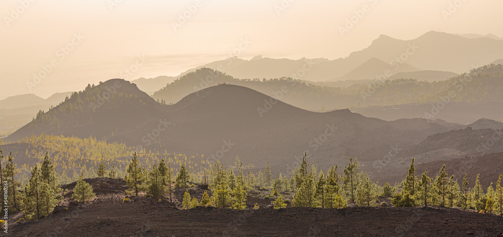Foto Patches of Canary Island pines (Pinus canariensis) growing on an old lava field