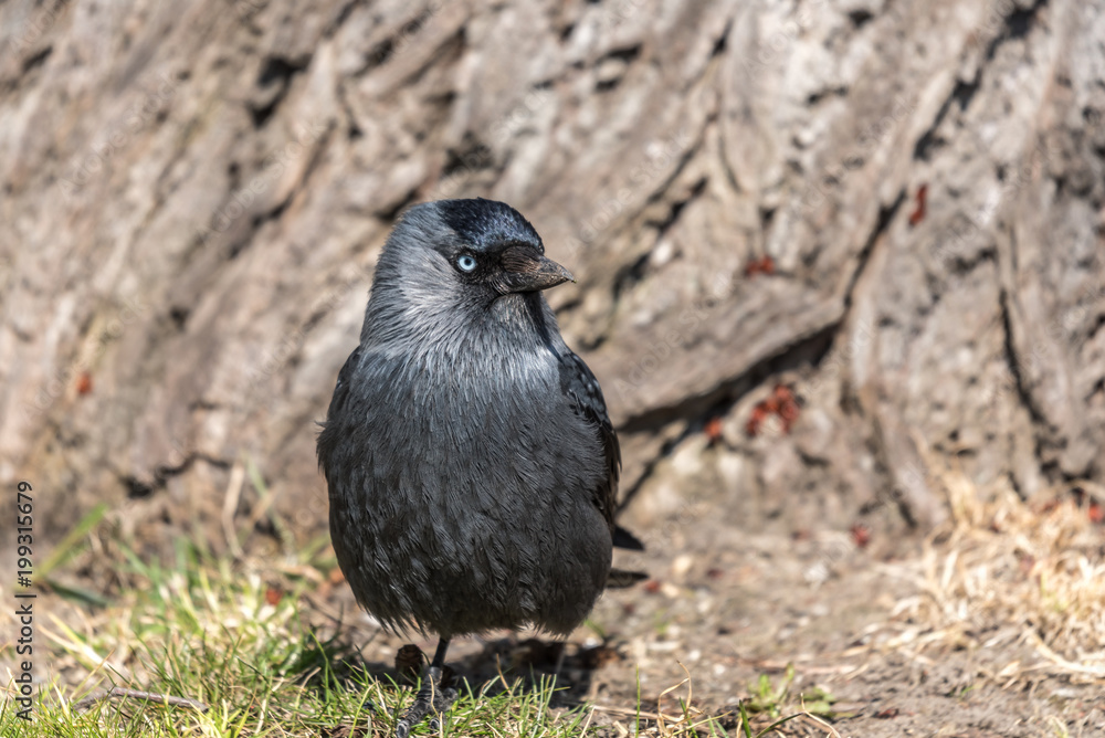 Foto portet pojedynczego czarnego ptaka. kawka, wiosna
