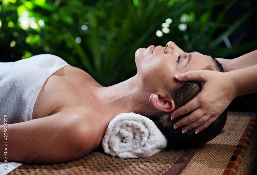 Quadro su tela portrait of young beautiful woman in spa environment.