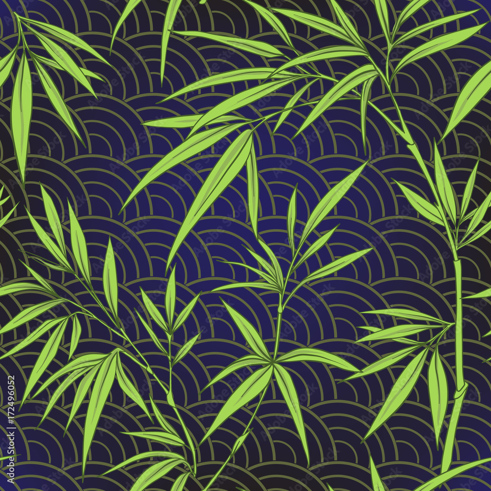 Foto Seamless pattern with bamboo leaves and branches in Japanese sty