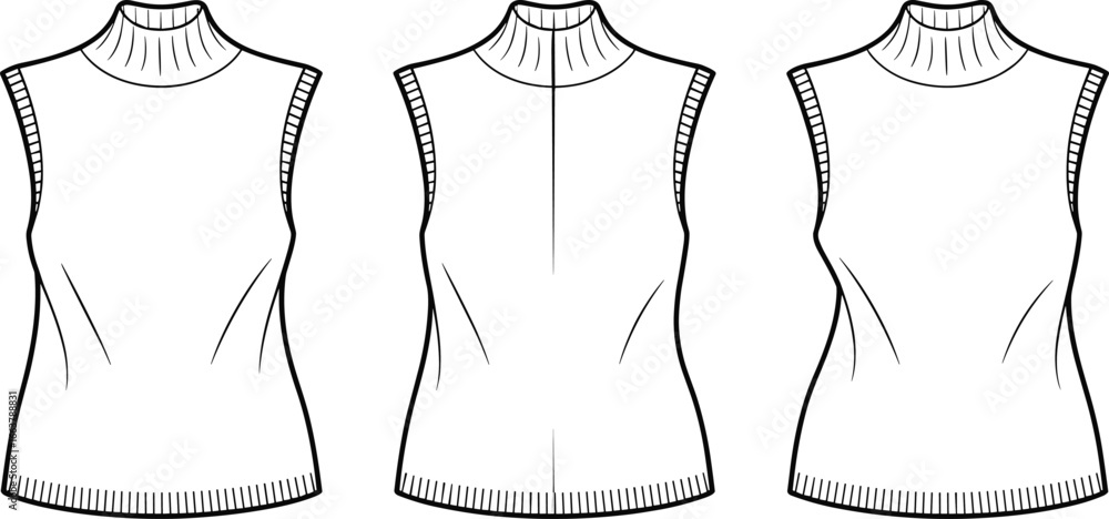 Quadro su tela Sleeveless mock neck knit top fashion technical sketch, women’s high neck tank s