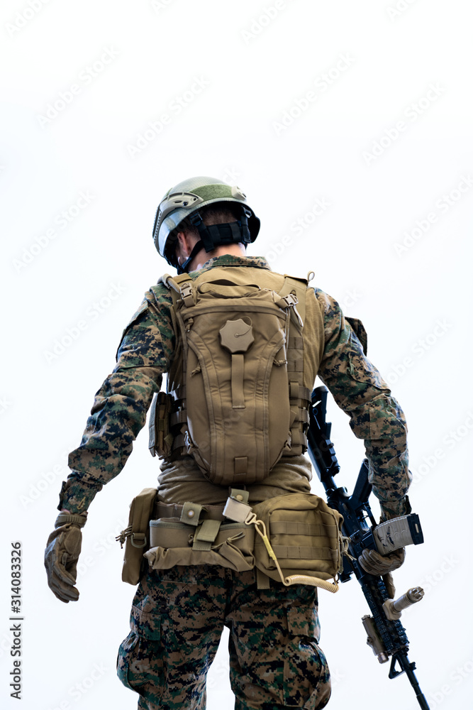 Quadro su tela soldier going in battle rear view