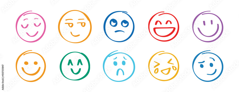 Foto Human emotions smiley doodle hand drawn set
