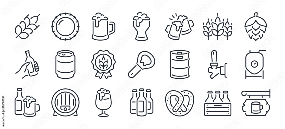 Foto Beer glass, drink pub and brewery editable stroke outline icons set isolated on white background flat vector illustration