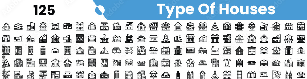 Foto Illustration of different types of houses in a variety of styles and designs, illustrated in a sleek black and white format