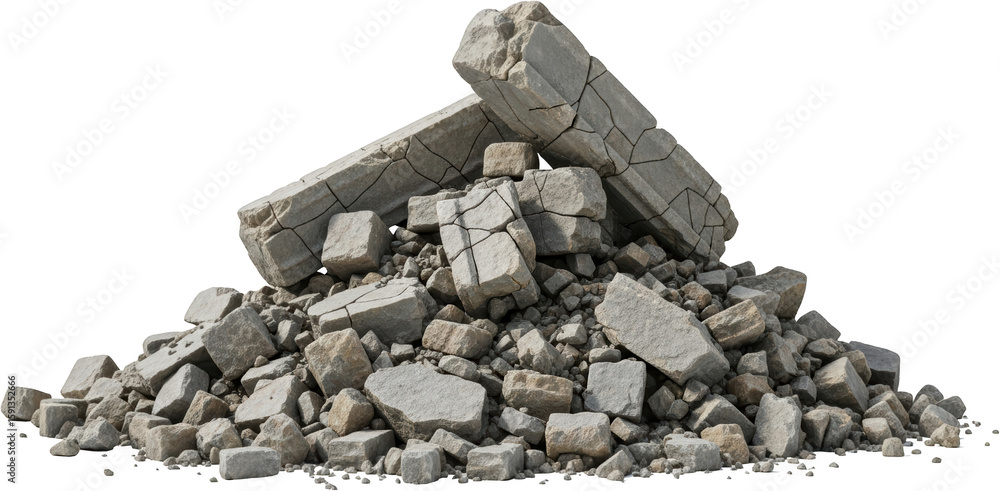 Foto Pile of large cracked gray stones and rubble isolate broken debris construction