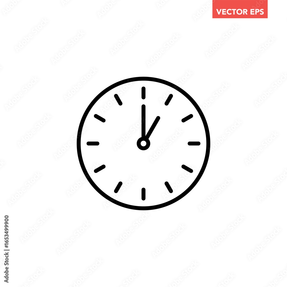 Foto Black single round time clock icon, simple 1 am or pm clock flat design vector p