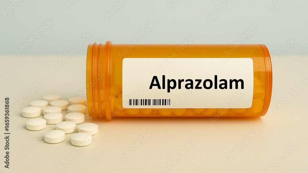 Foto Alprazolam tablets used for anxiety and panic disorders, short term benzodiazepine treatment