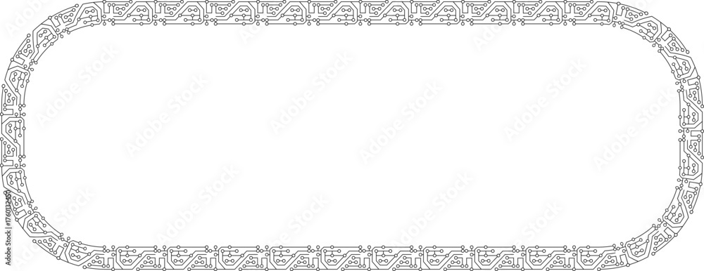 Foto Rectangular electronic circuit frame with softly rounded corners and connected conductive lines