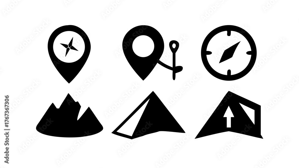 Foto Vector art of outdoor adventure essentials a black and white vector illustration