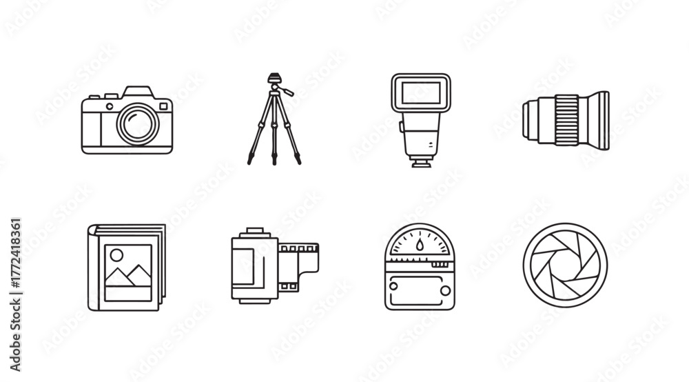 Foto Collection of camera equipment icons for photography enthusiasts and professiona
