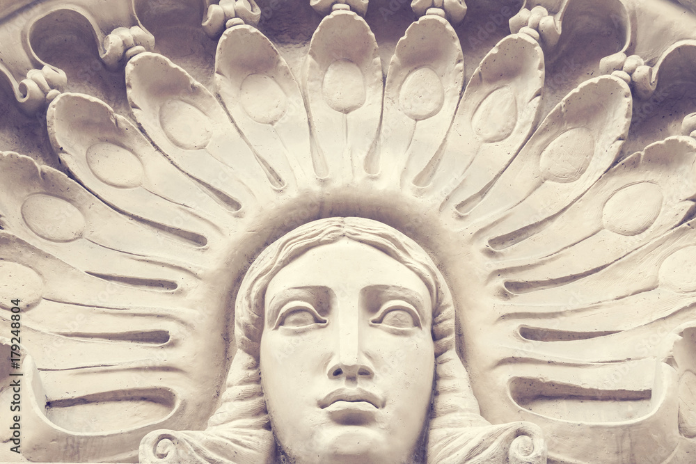 Foto Stone bas-relief with a woman's head