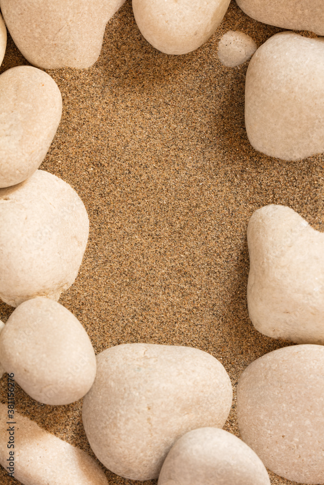Foto beach sand and white stones center space for writing