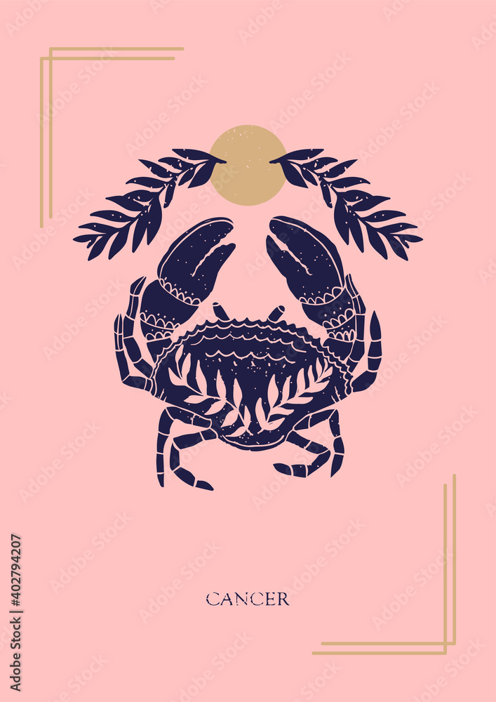 Foto Zodiac sign Cancer in boho style on the pink background