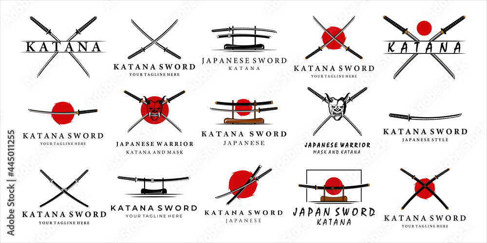 Foto set of katana sword logo vintage vector illustration concept template icon design