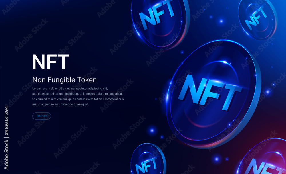 Foto NFT nonfungible token illustration with red and blue glowing lights dark blue background