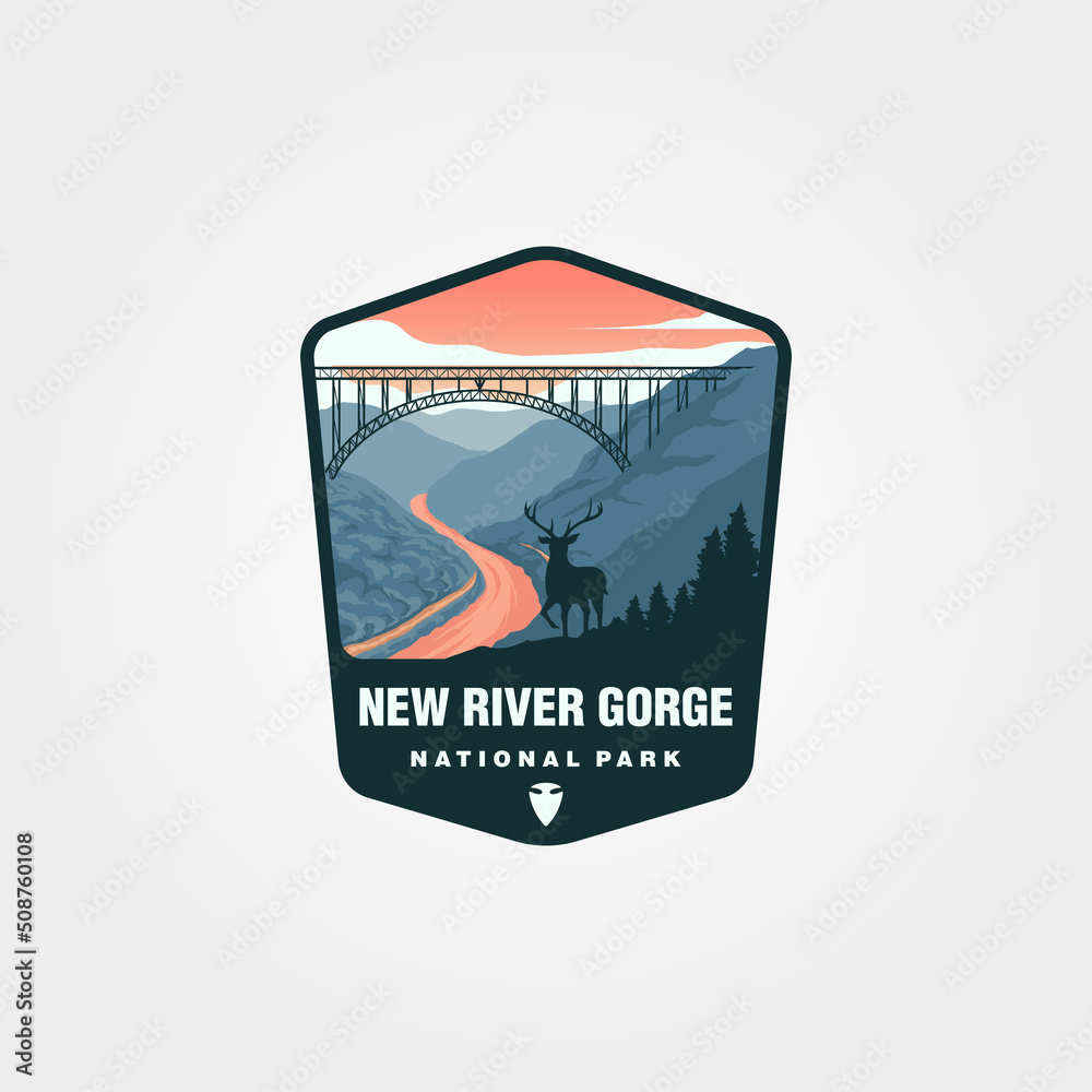 Foto new river gorge vintage logo patch vector symbol illustration design, us nationa
