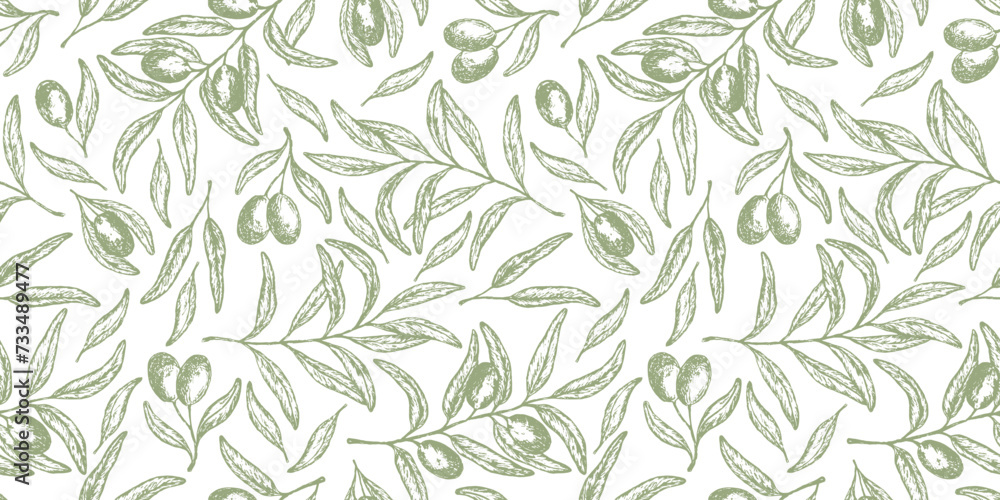 Foto Sketch light olive green seamless pattern with hand drawn vector olives branches