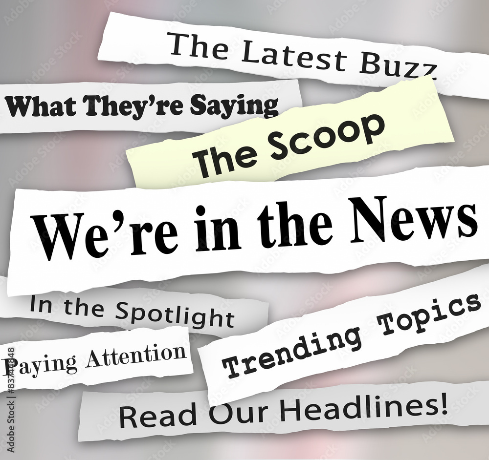 Foto We're in the News Ripped Torn Newspaper Headlines Attention