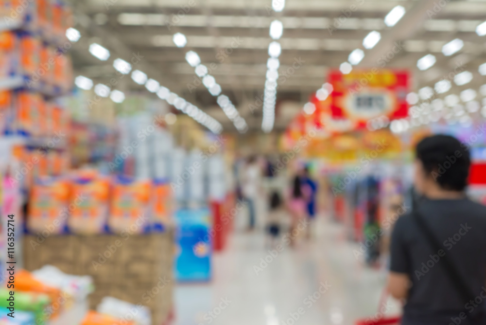 Quadro su tela Blur of store for shopping at supermarket