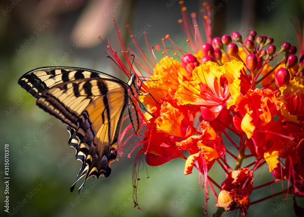 Quadro su tela Beautiful swallowtail Butterfly on an orange Mexican bird of paradise plant