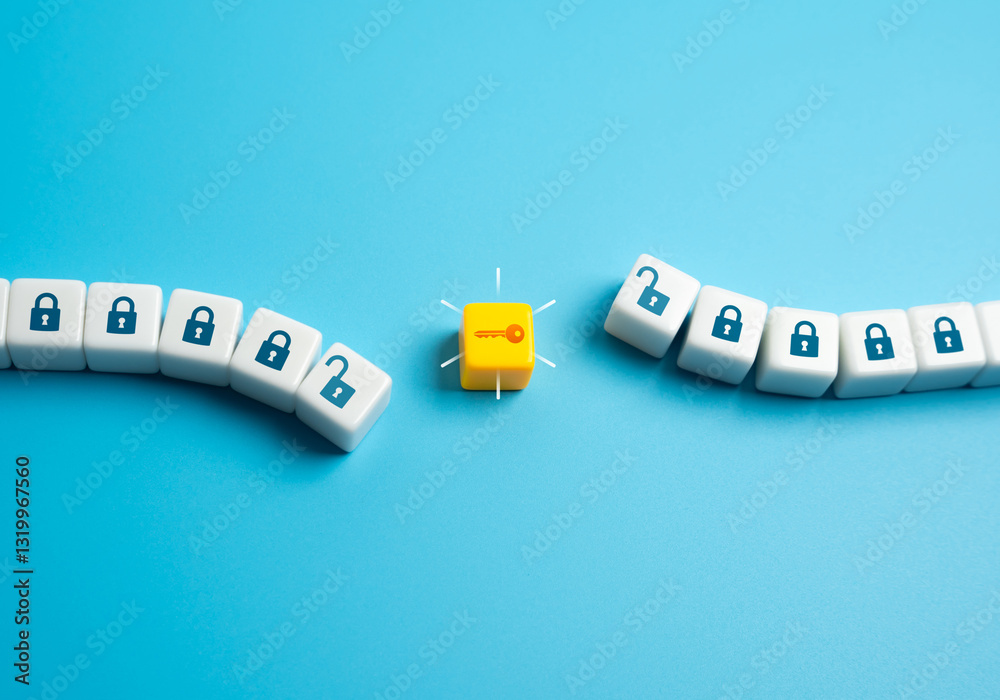 Quadro su tela A key that opens a chain of locks and restrictions