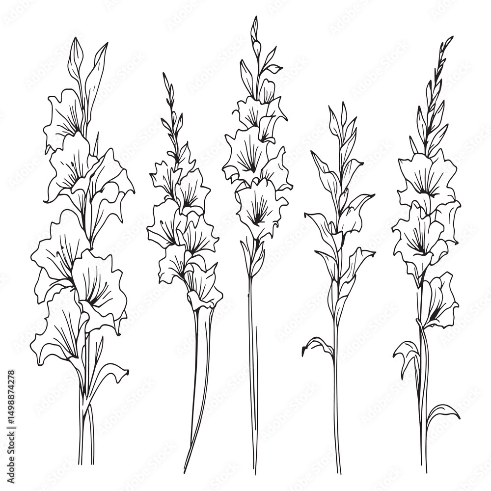 Quadro su tela Beautiful gladiolus flower outline line art vector graphic