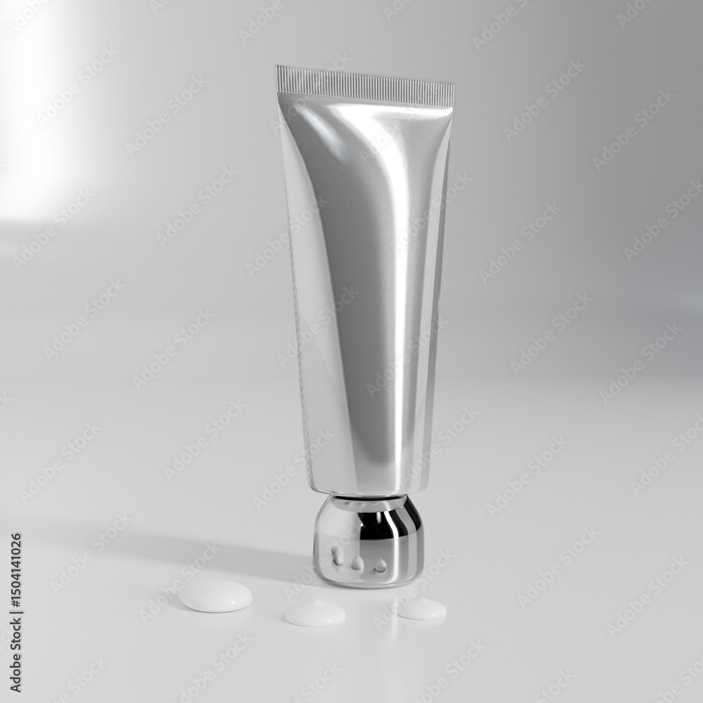 Quadro su tela Facial cleanser tube packging mockup, metallic cosmetic soft tube mockup, alumin