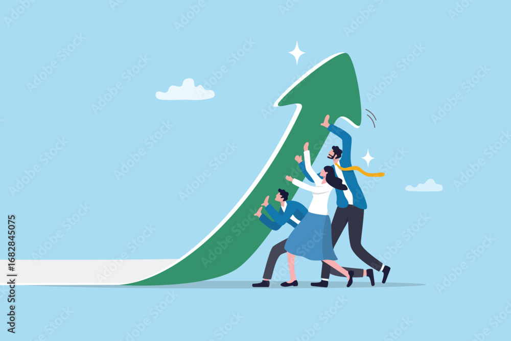 Quadro su tela Improvement, change or growing business, motivation or aspiration to success, development effort or challenge concept, business people teamwork help push arrow upward metaphor improvement or growth