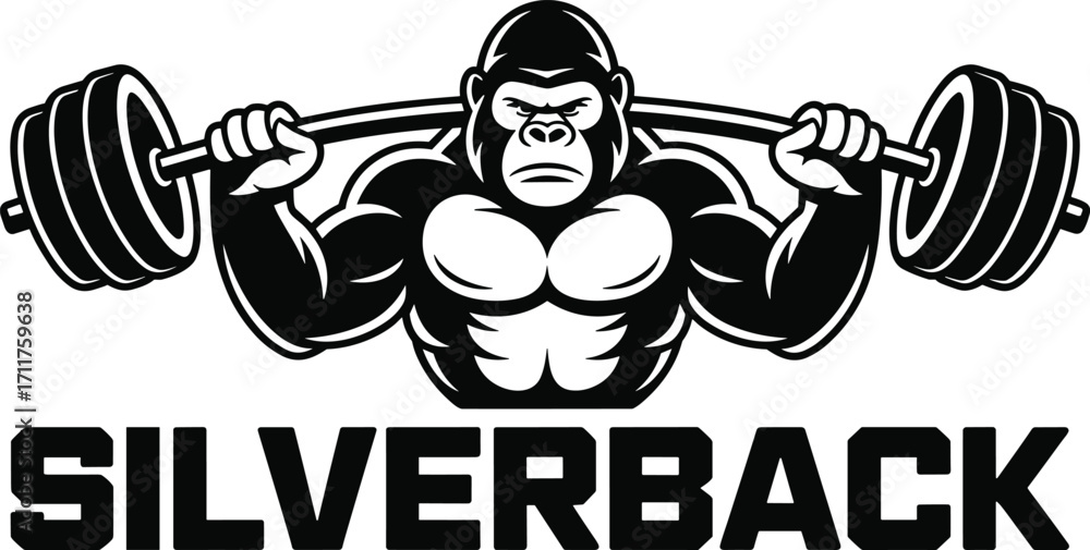 Quadro su tela Muscular gorilla lifting barbell, strength training concept, monochrome gym masc