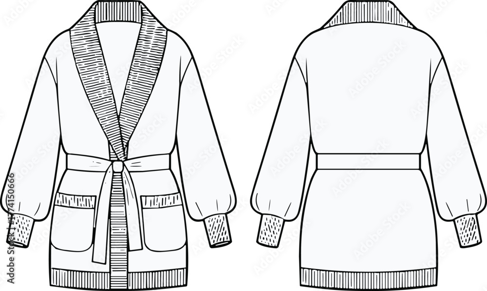 Quadro su tela Cardigan sweater design illustration, shawl collar, belt closure, patch pockets,