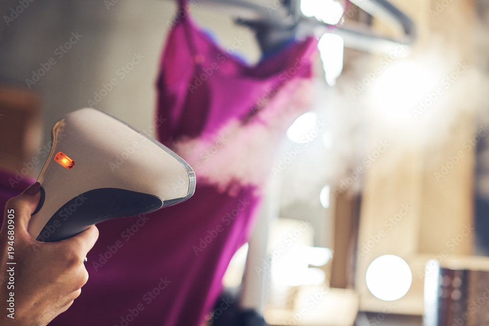 Quadro su tela woman is preparing for event she is ironing her dress.