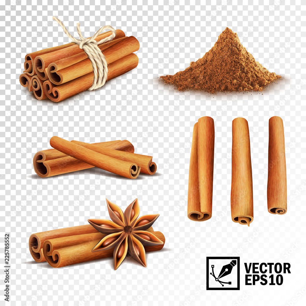 Quadro su tela 3d realistic vector set of cinnamon ( cinnamon sticks tied with a rope, anise st