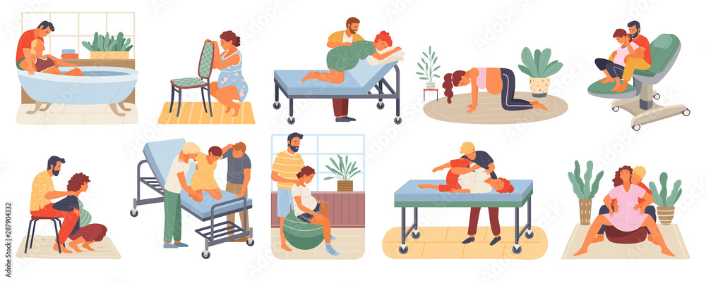 Quadro su tela Position of pregnant woman, reproduction set, man obstetrics