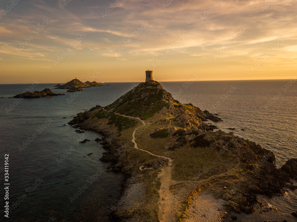 Quadro su tela Tour génoise iles sanguinaires coucher soleil corse