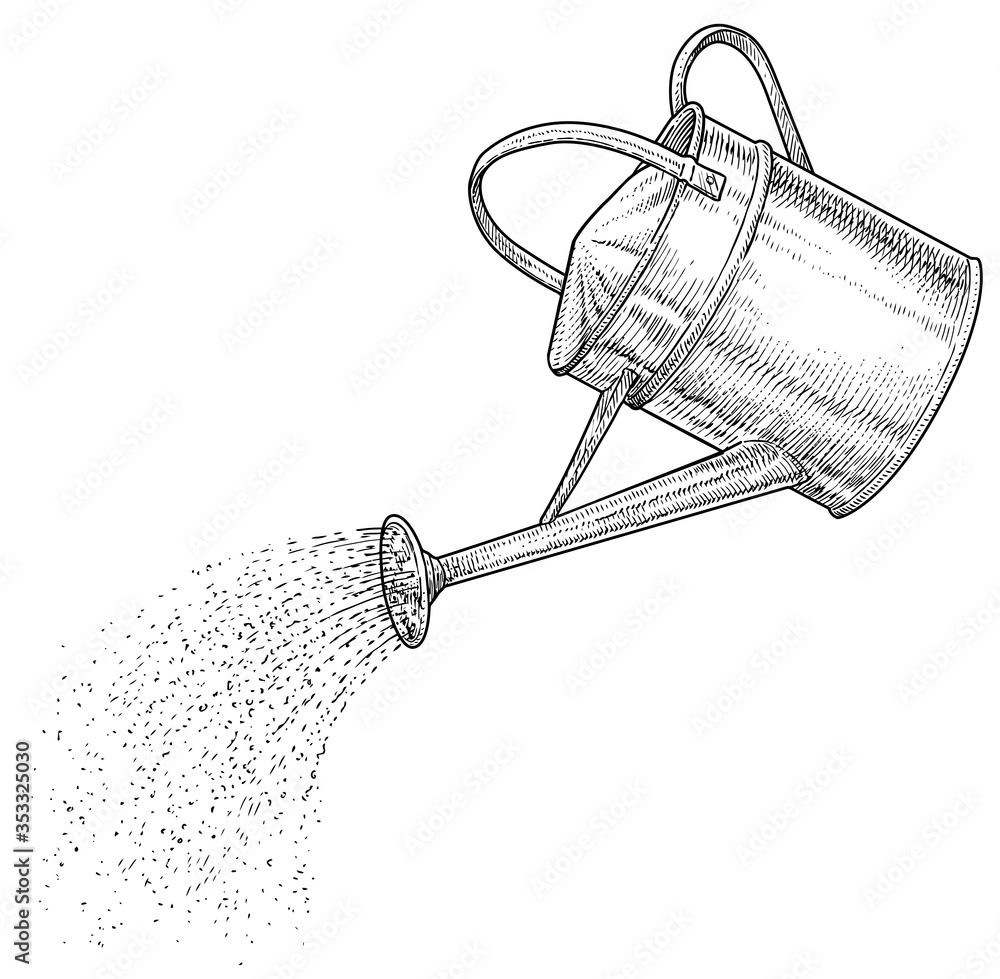 Quadro su tela Watering can illustration, drawing, engraving, ink, line art, vector