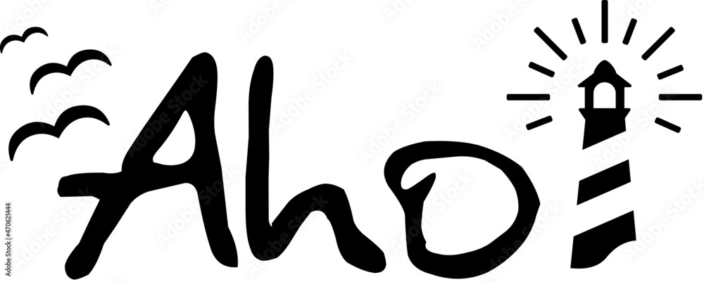 Quadro su tela Ahoi Schriftzug mit Möwen und Leuchtturm