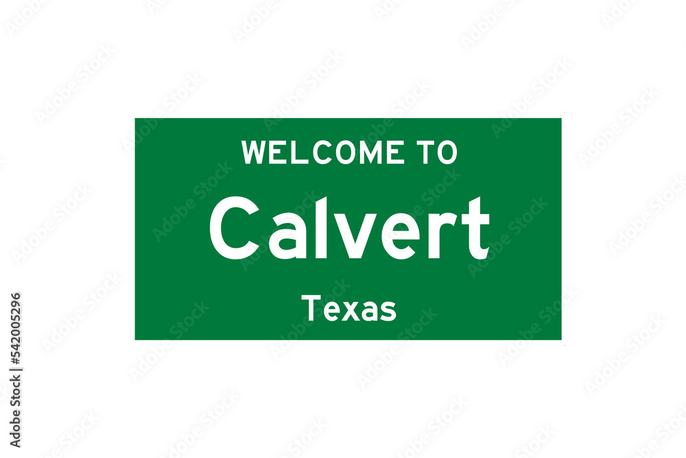 Quadro su tela Calvert, Texas, USA. City limit sign on transparent background.