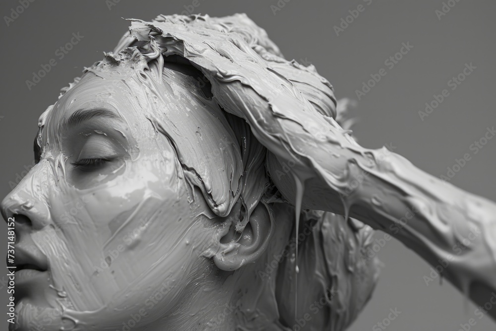 Quadro su tela female with hair covered in thick wax applying makeup and wiping hair
