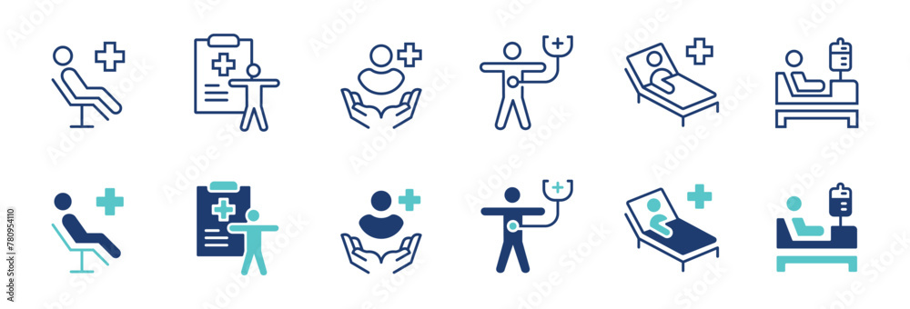 Quadro su tela patient health treatment icon vector set people medical diagnosis check-ups in h