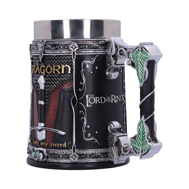 Questo boccale ufficialmente concesso in licenza de Il Signore degli Anelli di Nemesis Now include un inserto rimovibile in acciaio inox per una facile pulizia. Realizzato in resina e dipinto a mano, è decorato con i nomi e i motivi di Gimli, Legolas e Aragorn, mentre il manico è intrecciato con la Foglia di Lorien. Un oggetto da collezione straordinario per ogni fan della Terra di Mezzo. Consegnato in una confezione regalo con logo, ideale come dono o per una conservazione sicura.